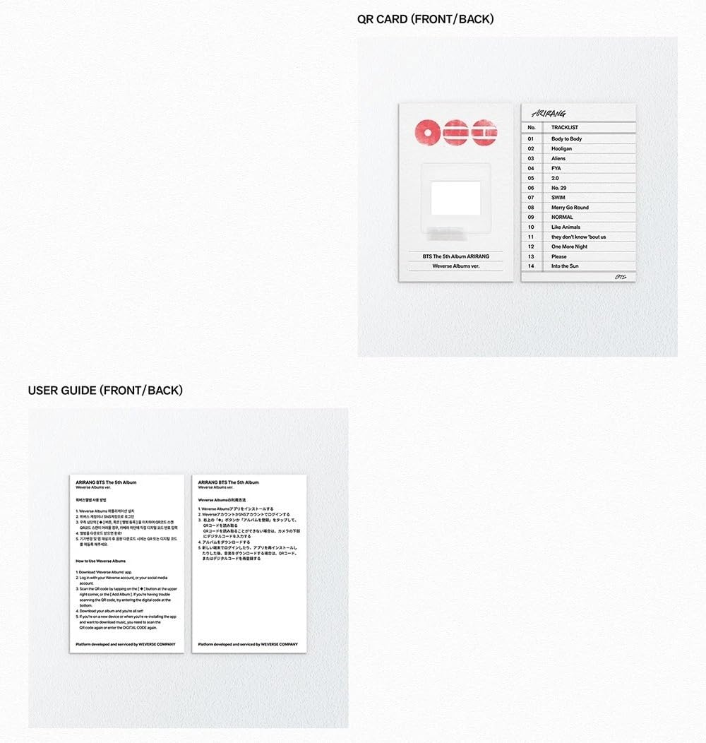 Album BTS – ARIRANG phiên bản Weverse Albums phát hành ngày 20/03/2026, gồm 14 ca khúc như Body to Body, Hooligan, Aliens, FYA…
